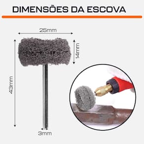Kit com 10 Escovas de Polimento Nylon 25mm Grão 800 para Micro Retíficas Dremax - Marca: Dremax - Referência: EPN005-10X - kit exclusivo com 10 escovas - Cor: Cinza - Material: Fibra do nylon - Gramatura: Grão 800 fino - Diâmetro da escova: 25mm 1 Pol. - Espessura aproximada da escova: 14mm - Diâmetro da haste: 3mm 1/8 Pol. - Comprimento: 43mm - Modelo exclusivo com 3 camadas de espessura, mas eficaz e durável que os concorrentes - Escova tipo Scotch Brite - Velocidade de trabalho recomendada: 2.000 a 12.000rpm - As escovas almofadas de polimento são usadas em polimento madeira, metal, polimento de pedra etc. , gravura, moagem, lixamento e limpeza - Ideal para limpeza, desbaste e polimento de todos os tipos de joias e metais preciosos. - Acessório indicado para joalheiros, serralheiros, armeiros, técnicos, colecionadores de moedas, arqueólogos, estudantes, etc. - Indicado para todas as marcas de micro retíficas, como Dremel, Charbs, Einhell, Black+Decker, Dremax, Mondial, Vonder, Titanium, Western, Ingco, Gamma, Wesco, etc. - : 90 dias contra defeitos de fabricação A DREMAX é a primeira e única marca brasileira dedicada exclusivamente às micro retíficas, acessórios e acoplamentos para esta indispensável ferramenta. Seja para trabalhos de precisão, artesanato, modelagem ou reparos, a DREMAX tem o produto certo para você.
