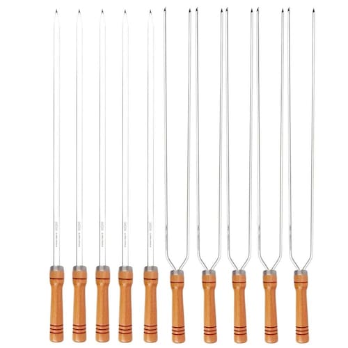 O Kit com 10 Espetos Mor 75 cm é a solução completa para quem precisa de agilidade, segurança e desempenho na hora do churrasco. Com 5 espetos duplos e 5 espetos simples, esse conjunto é ideal para preparar diferentes tipos de carnes, vegetais, pães e acompanhamentos, seja em churrasqueiras domésticas ou em eventos maiores. Fabricados em aço cromado de alta resistência, os espetos suportam altas temperaturas sem deformar. Os cabos de madeira oferecem conforto térmico e firmeza no manuseio, garantindo mais segurança para o churrasqueiro. Composição do kit: 5 espetos simples de 75 cm 5 espetos duplos de 75 cm Destaques do produto: Aço cromado resistente: maior durabilidade e facilidade na limpeza Cabo de madeira anatômico: proteção contra calor e pegada segura Espetos duplos: ideais para cortes maiores como costela, picanha e sobrecoxa Espetos simples: versáteis para carnes fatiadas, linguiças, legumes e pães Medida padrão para uso em churrasqueiras residenciais ou profissionais Excelente custo-benefício para grandes preparos Especificações técnicas: Marca: Mor Material: Aço cromado com cabo de madeira Comprimento total: 75 cm Comprimento da lâmina: 60 cm Comprimento do cabo: 15 cm Diâmetro da lâmina: 0,25 mm : 90 dias Observação: Imagens meramente ilustrativas. Os objetos de ambientação não acompanham o produto. Transforme seus churrascos em momentos ainda mais práticos e saborosos com o Kit 10 Espetos Mor - ideal para quem busca quantidade, resistência e qualidade no preparo. Marca: Não Informado Ean: 7898762847918