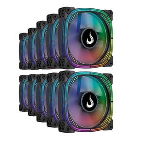 Kit 10 Fans Rise Mode Aura Pro Black ARGB 120mm Preto - RM-AUB-02-ARGB