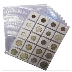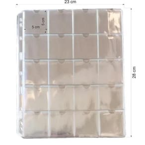 Kit 10 folhas para 20 moedas bolsos sem abas 28x23cm Especificações: comprimento: 28 cm largura: 23 cm quantidade de bolsos: 20 altura do bolso: 5,0 cm largura do bolso: 5,0 cm transparência: alta furação: universal Marca: Ljl.Etc Ean: 7895115585596