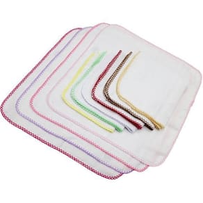 Quantidade: 10 fraldinhas de boca quadriculadas Medidas: 33x33 cm tamanho compacto e prático Composição: Tecido duplo 100% algodão suave e resistente Acabamento: Crochê feito à máquina, para um toque especial Idade indicada: Desde o primeiro dia de vida