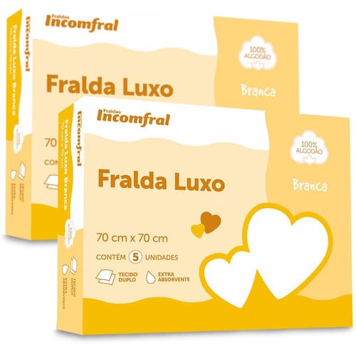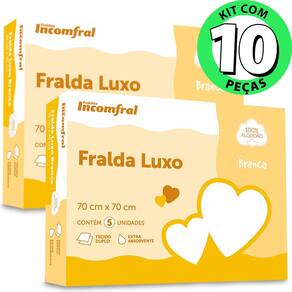 Kit 10 Fraldas de Pano Tecido Duplo 100% Algodão Extra Absorção 70cm x 70cm Incomfral