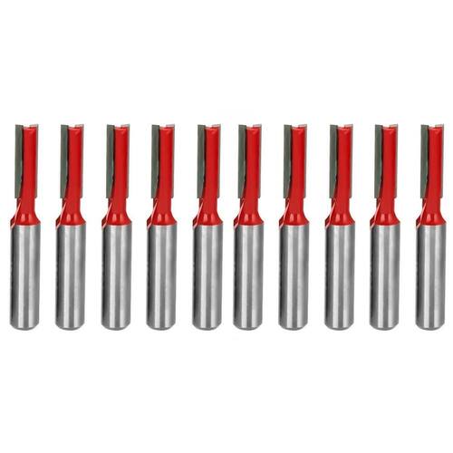 Kit com 10 Fresas Retas 6mm Haste 6mm Corte Duplo para Madeira Tupia Dentes de Metal Duro Fresa Reta haste 6mm e diâmetro de corte de 6mm para acabamento. Com dentes de metal duro, indicada para acabamentos laterais em madeira e derivados, utilizada em tupia - Marca: VAZ - Referência: 19465-10X - Kit Exclusivo com 10 fresas - Haste: 6mm - Diâmetro do corte: 6mm - Kit com 3 fresas - Fresa com dentes de metal duro - Indicada para acabamentos laterais em madeira e derivados, utilizada em tupia - Possui 2 dentes de vídea/metal duro, conferindo maior durabilidade - : 90 dias Marca: Não Informado