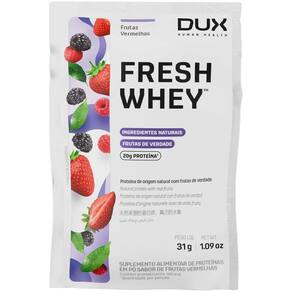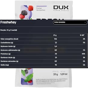 Proteína com ingredientes naturais, sem conservantes, aromas ou adoçantes artificiais para melhorar asaúde e bem-estar geral. Naturalmente Superior. Proteína 100% pura e limpa, com ingredientes naturais a base de frutas e nuts de verdade, para melhorar a saúde e bem-estar geral. Fresh Whey é uma categoria única de proteínas, feita com frutas e nuts de verdade, que proporcionam sabores reais que surpreendem. Combina 3 tipos de proteína do soro de leite - concentrada, isolada e hidrolisada - trazendo o melhor de cada uma delas: sabor, pureza e qualidade. São 20g de proteína por dose em uma fórmula clean label, com aromas e adoçantes naturais, e um perfil de aminoácidos completo. Fresh Whey é para quem busca uma proteína 100% pura, com ingredientes naturais, muito sabor e qualidade superior. É uma alternativa versátil para suplementação de proteína, podendo ser utilizada em qualquer momento do dia e em diversas preparações, para pessoas que buscam melhorar sua saúde e bem-estar geral. A proteína é um componente importante de todas as células do corpo. Nosso organismo a utiliza, principalmente para construir tecidos, sendo, portanto, um componente fundamental de ossos, músculos entre outras estruturas. A proteína do soro do leite contém BCAA e outros aminoácidos essenciais ao funcionamento do organismo. - Aminograma Completo - 20g Proteína - Frutas e Nuts de Verdade - Ingredientes Liofilizados - Adoçantes e Aromas Naturais Sugestões de Uso Fresh Whey pode ser consumido a qualquer hora do dia, como um lanche saudável e saboroso, podendo ser misturado em preparações doces ou salgadas, quentes ou frias.