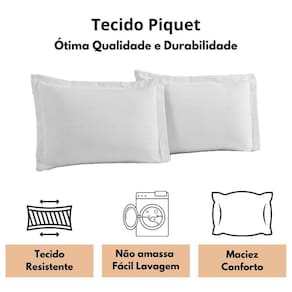 É uma opção elegante e clássica para decorar a cama. O Piquet é um tecido de algodão com textura em alto relevo, confere um visual sofisticado, traz a maciez e o conforto, além de um toque de beleza e elegância na decoração do ambiente.
