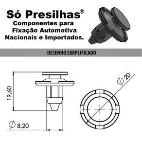 Especificação Técnica: Grampo Fabricado em Plástico de Alta Resistência Branco C/ Anel Preto Emborrachado Alta Durabilidade Fácil Instalação Ótimo Acabamento Encaixe Perfeito Produto Similar ao da Montadora Medidas: Corpo 19,60mm / Cabeça 20mm / Furo 8,20mm O Aerofólio não acompanha o kit de fixação!