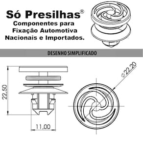 Kit 10 Grampos Presilhas Para Forro da Porta Bora 2000 até 2006APLICAÇÃO - FORRO DA PORTA:BORA: 2000, 2001, 2002, 2003, 2004, 2005, 2006Especificação Técnica:Grampo Fabricado em Plástico de Alta ResistênciaAlta DurabilidadeFácil InstalaçãoÓtimo AcabamentoEncaixe PerfeitoProduto similar ao da MontadoraMedidas: Corpo 22,50mm / Cabeça 22,20mm / Furo 11,00mmProduto NovoO Forro da Porta Dianteira não acompanha o kit de fixação!Conteúdo da Embalagem:10 GramposImportante:Garantia de Fabrica: 3 Meses.Valor: Kit com 10 Peças.Imagens Meramente Ilustrativas.Recomendamos que a instalação seja feita por profissional especializado e não nos responsabilizamos pelo mau uso do produto. Marca: PCFIX