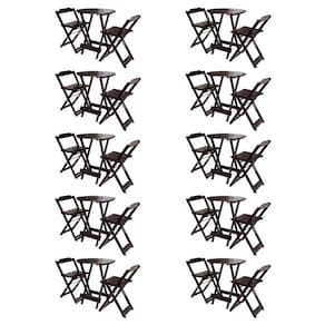 Kit 10 Jogos De Mesa Bistrô De Madeira Com 2 Cadeiras Dobravel Ideal Para Bar E Restaurante Tabaco é ideal para bares, restaurantes, estabelecimentos, áreas de lazer e tambem para sua casa. Feito em madeira maciça, tornando resistentes e duráveis. Seu design permite que seja encaixado em qualquer ambiente, trazendo um toque a mais para seu estabelecimento. Além de sua durabilidade, o que lhe trará conforto para servir seus clientes. Por ser dobrável torna-se mais fácil guardar, manusear e limpar o produto. Atenção: EVITE USAR PRODUTOS ABRASIVOS E QUíMICOS PARA LIMPEZA DO PRODUTO, aconselha-se o uso de pano umedecido para melhor conservação; mantenha o produto fora de chuva e sol constantes. OBS: MDF ULTRA MESA Cor: Tabaco Modelo: Bistrô Dobravel Dimensões: Altura 99cm | Largura 55cm | Profundidade 55cm CADEIRA Cor: Tabaco Modelo: Bistrô Dobravel Dimensões: Altura 100cm | Largura 38cm | Profundidade 37cm