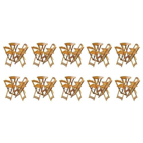 Kit 10 Jogos De Mesa Bistrô De Madeira Dobrável Com 3 Banquetas - Mel - Marrom