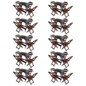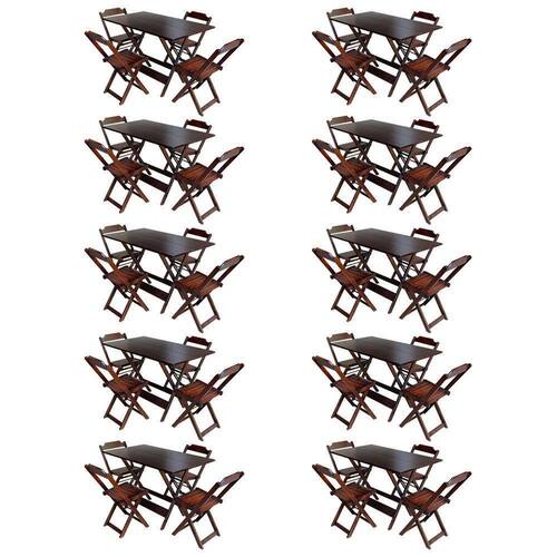 Kit 10 Jogos De Mesa Com 4 Cadeiras De Madeira Dobravel 120x70 Ideal Para Bar E Restaurante - Imbuia - Cor: Marrom