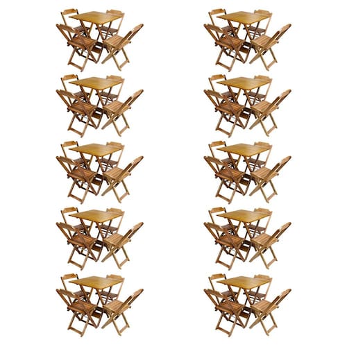 Kit 10 Jogos de Mesa com 4 Cadeiras de Madeira Dobravel 70x70 Ideal para Bar e Restaurante - Castanho
