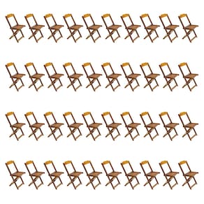Kit 10 Jogos de Mesa com 4 Cadeiras de Madeira Dobravel 70x70 Ideal para Bar e Restaurante - Castanho - Amarelo