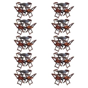 Kit 10 Jogos De Mesa Com 4 Cadeiras De Madeira Dobravel 70X70 - Imbuia - Marrom