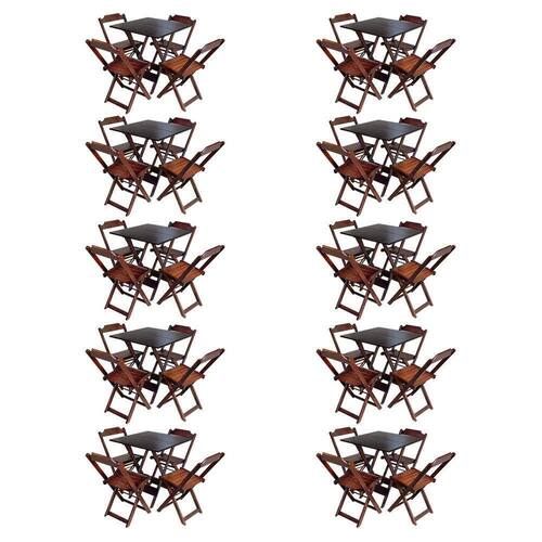 Kit 10 Jogos De Mesa Com 4 Cadeiras De Madeira Dobravel 70x70 Ideal Para Bar E Restaurante - Imbuia - Cor: Marrom