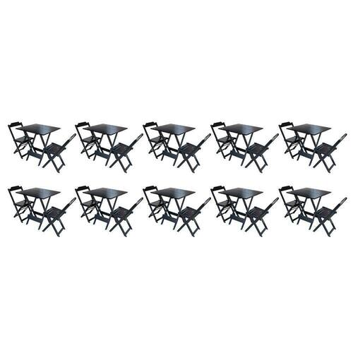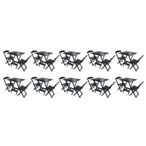 Kit 10 Jogos De Mesa Dobravel Com 2 Cadeiras De Madeira 70x70 - Preto - Cor: Preto
