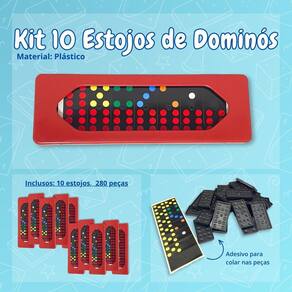 - kit 10 jogos de dominó com 10 estojos em plástico.