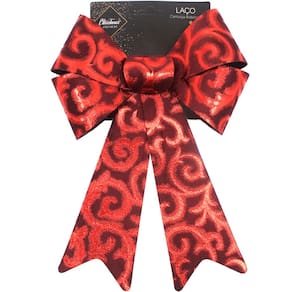 Kit 10 Laço Vermelho Em Camurça Enfeite Brilhante Natal 32cm -