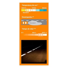 Características: Tensão de 12V, potência de 21W, base de vidro, 2 polos.