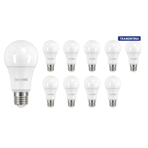 Para deixar os ambientes internos iluminados com menos gasto de energia, a Lâmpada LED Tramontina Bulbo Base E27 810 lm 9 W Bivolt 6500 K Luz Branca da Linha Iluminação LED é a escolha certa. Ela consome menos energia e é mais eficiente, proporcionando uma vida útil maior que as lâmpadas convencionais. Possui acendimento instantâneo, que favorece a melhor iluminação ao ser ligada. A lâmpada bulbo bivolt substitui as convencionais lâmpadas incandescentes e eletrônicas LFC . Com luz branca, possui 810 lúmens, 9 watts e 6500 kelvins. Ela vai deixar sua sala de estar, escritório e outros ambientes internos mais iluminados e elegantes. Contém: 10 Lâmpadas LED Importante: EAN13: 7891435945669 DUN14: 17891435945666 NCM: 8539.50.00 Peso Líquido: 0,0560 kg. Peso Bruto: 0,0600 kg. Metragem: 0,000428 m³. Dimensões Embalagem Compr. X Larg. X Alt. : 62x 60x 115 mm. Dimensões Produto Compr. X Larg. X Alt. : 60x 60x 113 mm. Cor 1: FFFFFFF Hexa Marca: Não Informado Ean: 7898673656128