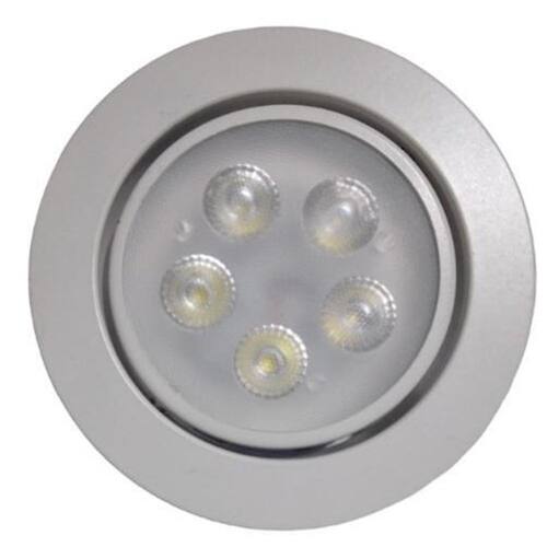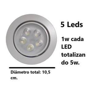 alta eficiência, alto brilho, ampla voltagem. Favorável ao meio ambiente, não contém mercúrio,cinza, sem interferência eletromagnética. Características: quantidade de leds:5 x 1w. Voltagem: ac85-265v bivolt . Luminosidade: 560 lumens. Angulo de abertura: 45 graus. Tempo de uso aproximado: 50. 000 horas. Peso: 110 gramas. Altura: 3,7 cm. Diâmetro total: 10,5cm. Diâmetro do furo: 7,5 cm. Feixe de luz direcionável. Cor: 3200k branco quente. Já vai com reator instalado, somente necessário fazer a ligação dos fios na sua instalação. Modelo com base redonda. Compra garantida: