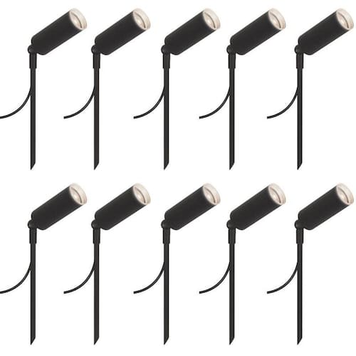 Kit 10 Luminárias Chão Espeto Jardim Escada Móvel Preto 30Cm