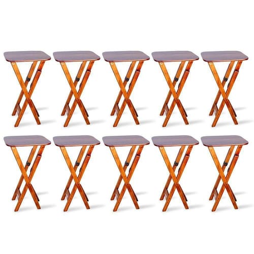 KIT 10 MESAS BISTRô DOBRáVEL MADEIRA PADRãO IMBUIA - TARIMATãé ideal para bares, restaurantes, estabelecimentos, áreas de lazer e tambem para sua casa. Em madeira maciça, tornando-os resistentes e duráveis. Seu design permite que seja encaixado em qualquer ambiente, trazendo um toque a mais para seu estabelecimento. Além de sua durabilidade, o que lhe trará conforto para servir seus clientes. Por ser dobrável torna-se mais fácil guardar, manusear e limpar o produto.Atenção: EVITE USAR PRODUTOS ABRASIVOS E QUÍMICOS PARA LIMPEZA DO PRODUTO, aconselha-se o uso de pano umedecido para melhor conservação mantenha o produto fora de chuva e sol constantes.*imagens meramente ilustrativas*Medidas Mesa BistrôçTampo 54cm x 45cmAltura 98cmKit 10 Mesas Bistrà DobrÃvel Madeira PadrÃo Imbuia - TarimatÃ