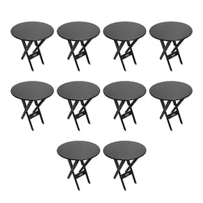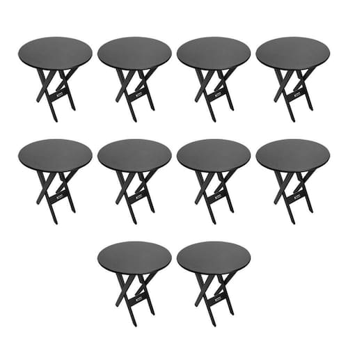 Kit 10 Mesas Dobráveis De Madeira Redonda 70cm Preta - Tarimatã