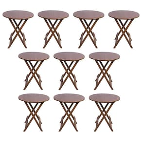Kit 10 Mesas Redondas Dobráveis Em Madeira Maciça 70x70 Imbuia Ideal Para Bares E Restaurantes