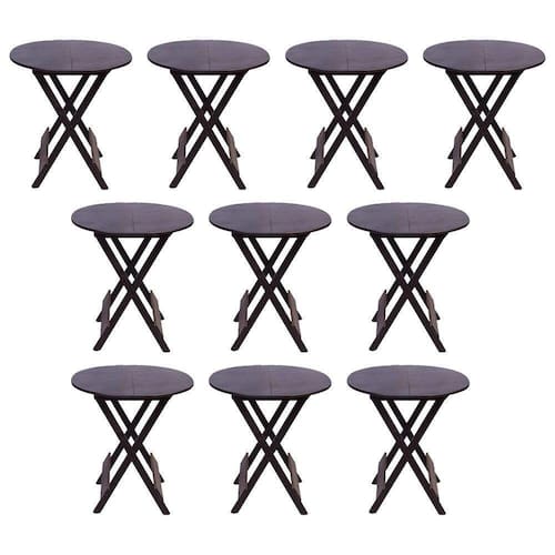 Kit 10 Mesas Redondas Dobráveis Em Madeira Maciça 70x70 Tabaco Ideal Para Bares E Restaurantes