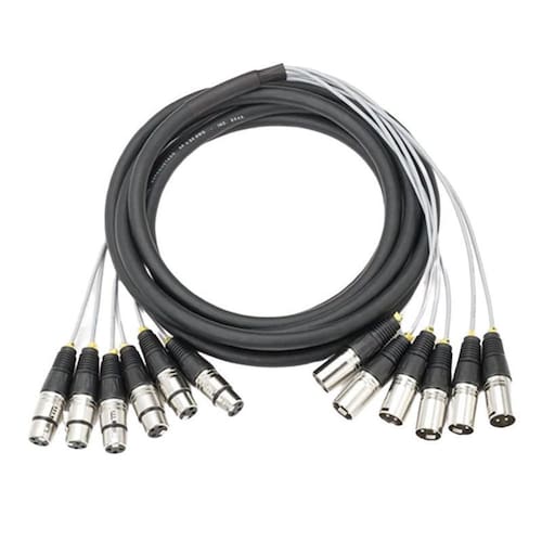 Multicabo microfones percussão 6 vias xlr macho e femea 10m Multicabo p/microfones percussao de 6 vias de 10 metros. Multicabo sparflex espaguetado 06 vias x 24 awg - 1 metro Cabo multisom, com condutores em cobre ofhc estanhado na seção de 24 awg pareado, blindado em fita de alumínio 100%, espaguetado e numerado par a par e reunidos com passo adequado, separados em fita tnt e coberto com termoplastico pvc. 06 vias Conector xlr macho e femea de linha hjh Descrição do fabricante: Título: xlr macho e femea Descrição do produto: conector xlr macho e feme de linha hjh Alta rotação Não Uso: áudio, microfone ou iluminação. Material: latão; Revestimento externo: pino banhado a ouro Ângulo: 180°.