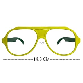 Óculos Aviador Festa de Casamento e outras Comemorações do Tipo Festa KIT Com 10 PeçasÓculos com frente Amarela Com A Haste Verde Sugestão de uso: É ideal para festas , shows, aniversários, formaturas, casamentos, debutantes, eventos em geral.Medidas aproximadas: 13cm x 4,5cm Ean: 7904390964108