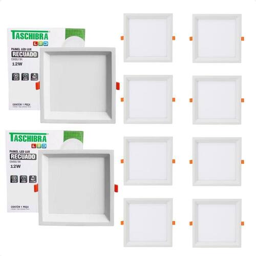 Kit 10 Painel de Led Quadrado Embutir Recuado 12W Bivolt Taschibra 6500K Frio