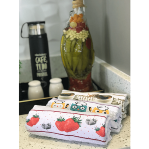 Característica Principal: Panos de Prato atoalhados super absorventes, com a barra lindamente decorada e espaço para bordar.