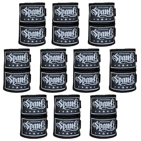 Dez pares de bandagem em poliester com elasticidade - spank - 3m cada -ideal para treinos de boxe, kickboxing, muaythai e mma - possui 3 metros de comprimento, possibilitando a bandagem completa da mão - feita de poliester de alta qualidade - possui fechamento em tiras aderentes - largura: 5cm - embalagem com 1 par Qual a importância do uso da bandagem A bandagem é um acessório importante para amarrar os ossos da mão, evitando torções, micro fraturas e dores decorrentes dos treinos. Com uma bandagem bem feita, sua mão ficará mais firme, resultando em golpes mais efetivos, possibilitando fazer treinos pesados todos os dias. Marca: Não Informado
