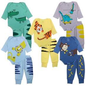 Cada conjunto é composto por cor neutra, porém com estampa alegre e colorida, proporcionando um visual encantador e divertido. Uma escolha essencial para o enxoval do seu recém-nascido.