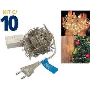 Kit 10 Pisca-Pisca com 100 Leds 8 Funções Branco Quente 127v Kit 10 Varal Pisca-Pisca de LED 100 Pinos - Crie Magia nas Festas de Fim de Ano Transforme suas festas de fim de ano em momentos mágicos e encantadores com o nosso Varal Pisca-Pisca de LED com 100 pinos. Este acessório versátil e fácil de usar vai ser a escolha perfeita para iluminar e decorar sua casa, jardim, festas ou eventos especiais. Com um total de 100 pinos de LED, ele adiciona um toque de sofisticação à sua decoração, graças ao design delicado e elegante. Características: -100 pinos de LED para um brilho suave e agradável.-design versátil e fácil de usar, ideal para diversas ocasiões.-fio transparente do cordão realça as luzes enquanto os pinos branco quente trazem um charme especial.-interruptor com 8 funções/tipos de iluminação, permitindo várias combinações de luz.-luzes LED de baixo consumo energético para um ambiente acolhedor.-materiais duráveis e de alta qualidade para resistência e segurança. Cuidados: -não instalar em árvores com revestimentos metálicos.-evitar montar ou instalar os fios de maneira que possam ser danificados.-manter fora do alcance de crianças. Especificações: -material: LED, Polipropileno e Componentes Eletrônicos-dimensões: Comprimento: 9 Metros-peso: Aproximadamente 115 g-cor: Amarelo/Branco Quente Conteúdo da Embalagem: -kit com 10 Varal Pisca-Pisca 100 Pinos de LED - Branco Quente Crie um ambiente mágico e encantador em suas festas de fim de ano com nosso Varal Pisca-Pisca de LED com 100 pinos. Com diversas opções de iluminação e um design elegante, este varal é perfeito para decorar sua casa, jardim ou eventos especiais. As luzes de baixo consumo energético proporcionam um brilho suave, criando uma atmosfera acolhedora. Feito com materiais duráveis e seguros, este varal é ideal para momentos de comemoração. Adicione um toque especial às suas celebrações com este pisca-pisca de qualidade.