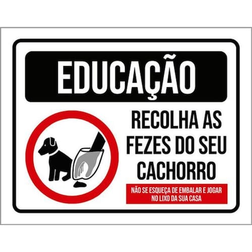Kit 10 Placa Educação Recolha As Fezes Do Seu Cachorro 36x46 Placas de sinalizaço fabricadas com poliestireno de alto impacto PSAI de 2mm e impressão ultravioleta.