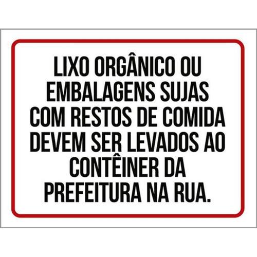 Kit 10 Placa Lixo Orgânico Embalagens Sujresto Comida36x46 Placas de sinalizaço fabricadas com poliestireno de alto impacto PSAI de 2mm e impressão ultravioleta.