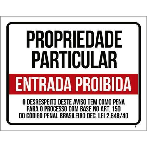Kit 10 Placa Proprieda Particular Entrada Proibida Lei 36x46 Placas de sinalizaço fabricadas com poliestireno de alto impacto PSAI de 2mm e impressão ultravioleta.