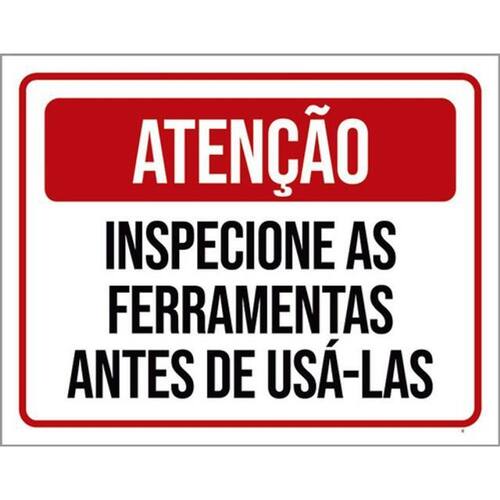 Kit 10 Placas Atenção Inspecione Ferramentas 36x46 Placas de sinalizaço fabricadas com poliestireno de alto impacto PSAI de 2mm e impressão ultravioleta.