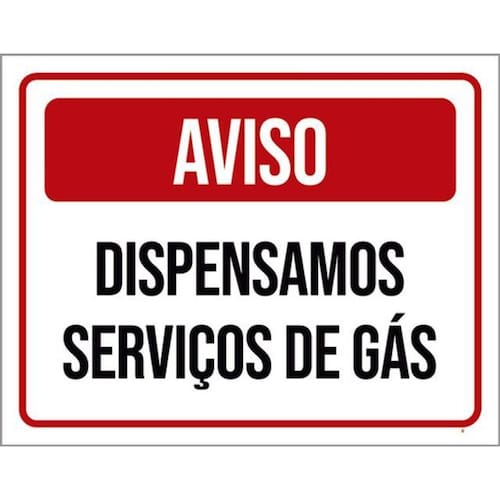 Kit 10 Placas Aviso Dispensamos Serviços De Gás 36x46 Placas de sinalizaço fabricadas com poliestireno de alto impacto PSAI de 2mm e impressão ultravioleta.
