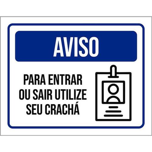 Kit 10 Placas Aviso Entrar Sair Utilize Crachá Placas de sinalizaço fabricadas com poliestireno de alto impacto PSAI de 2mm e impressão ultravioleta.