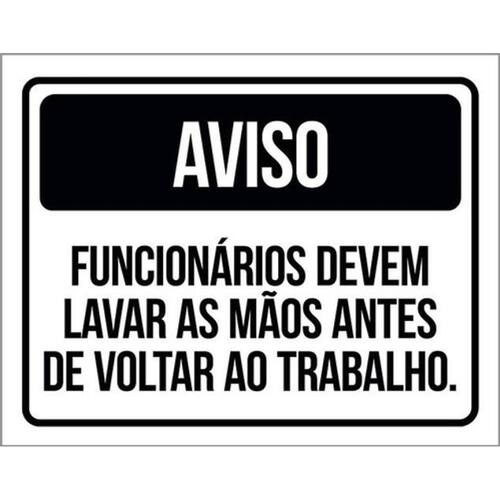 Kit 10 Placas Aviso Funcionários Lavar Mãos 36x46 Placas de sinalizaço fabricadas com poliestireno de alto impacto PSAI de 2mm e impressão ultravioleta.