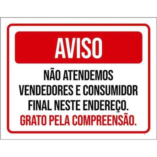 Kit 10 Placas Aviso Não Atendemos Vendedores 36x46 Placas de sinalizaço fabricadas com poliestireno de alto impacto PSAI de 2mm e impressão ultravioleta.