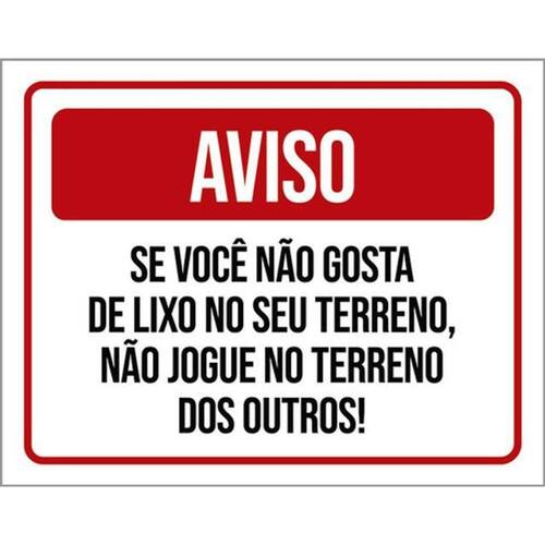 Kit 10 Placas Aviso Se Não Gosta Lixo Terreno Não Jogue Placas de sinalizaço fabricadas com poliestireno de alto impacto PSAI de 2mm e impressão ultravioleta.