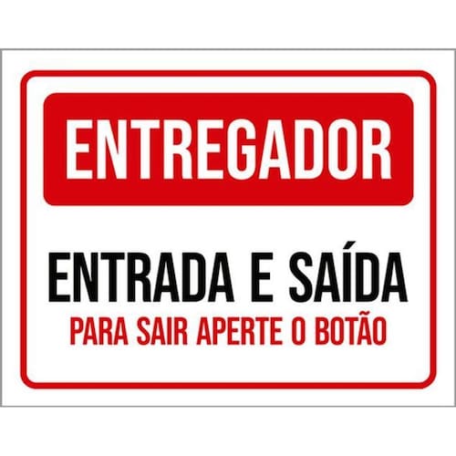 Kit 10 Placas Entregador Entrada Saída Aperte Botão Placas de sinalizaço fabricadas com poliestireno de alto impacto PSAI de 2mm e impressão ultravioleta.
