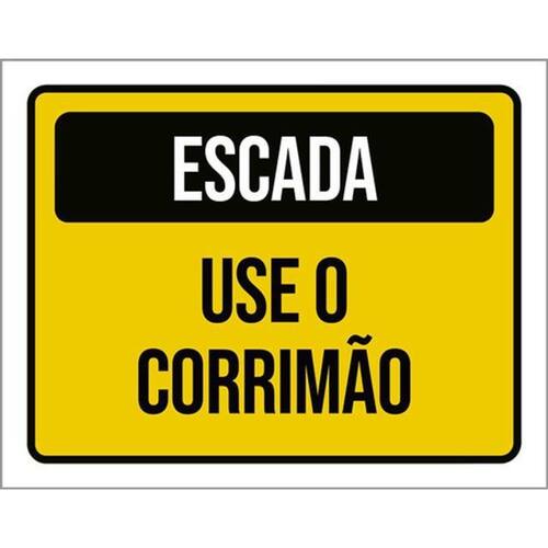 Kit 10 Placas Escada Use Corrimão Amarela 36X46
