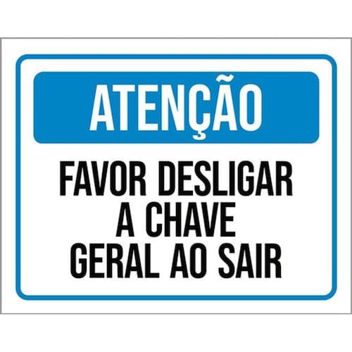 Kit 10 Placas Favor Desligar Chave Geral Ao Sair Placas de sinalizaço fabricadas com poliestireno de alto impacto PSAI de 2mm e impressão ultravioleta.