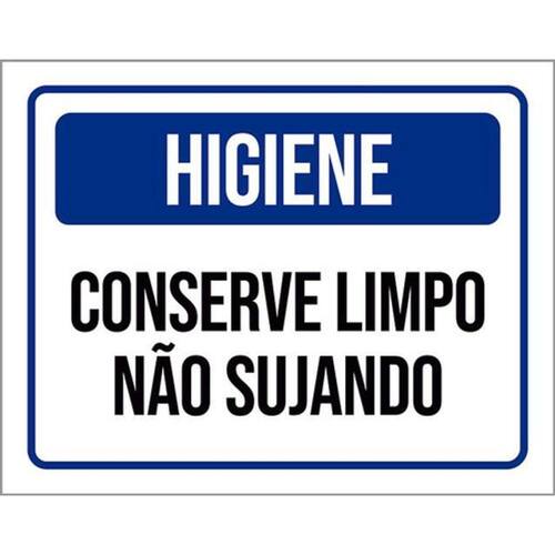 Kit 10 Placas Higiene Conserve Limpo Não Sujando Azul 36x46 Placas de sinalizaço fabricadas com poliestireno de alto impacto PSAI de 2mm e impressão ultravioleta.