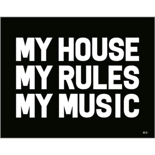 Kit 10 Placas My House My Rules My Music 36x46 Placas de sinalizaço fabricadas com poliestireno de alto impacto PSAI de 2mm e impressão ultravioleta.
